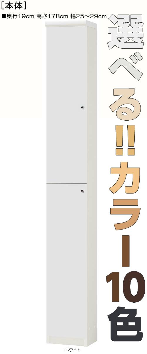 | 全面扉スリム収納 (棚板厚さ1.7m) 奥行19cm×高さ178cm×幅25〜29cm 幅は1cm単位で指定 |