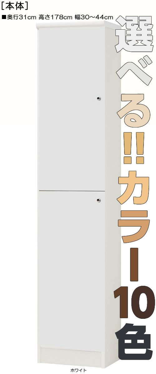 | 全面扉 | 標準棚板(厚さ1.7cm) | 棚板耐荷重:10Kg | 奥行31cm | 高さ178cm | 幅30〜44cm | お客様組立て | 低ホルムアルデヒド |