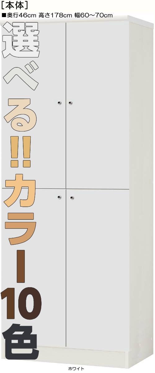 | 全面扉 | 標準棚板(厚さ1.7cm) | 棚板耐荷重:5kg | 奥行46cm | 高さ178cm | 幅60〜70cm | お客様組立て | 低ホルムアルデヒド |