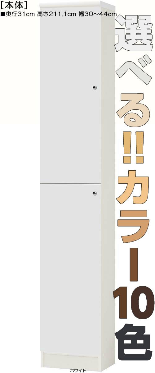 | 全面扉 | 標準棚板(厚さ1.7cm) | 棚板耐荷重:10Kg | 奥行31cm | 高さ211.1cm | 幅30〜44cm | お客様組立て | 低ホルムアルデヒド |