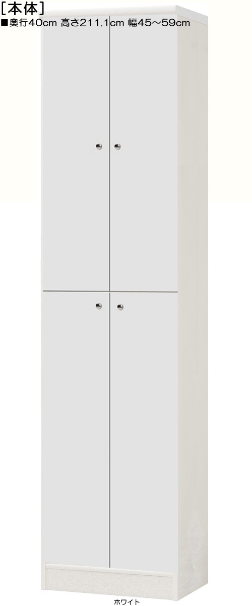 | 全面扉 | 標準棚板(厚さ1.7cm) | 棚板耐荷重:4Kg | 奥行40cm | 高さ211.1cm | 幅45〜59cm | お客様組立て | 低ホルムアルデヒド |