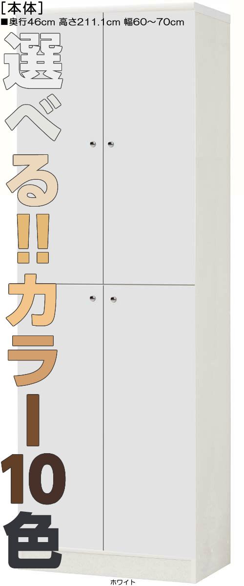 | 全面扉 | 標準棚板(厚さ1.7cm) | 棚板耐荷重:5kg | 奥行46cm | 高さ211.1cm | 幅60〜70cm | お客様組立て | 低ホルムアルデヒド |