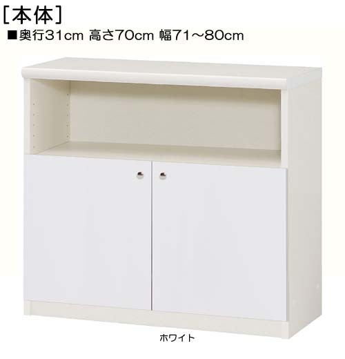 下部扉 窓下収納 高さ70cm幅71〜80cm奥行31cm厚棚板(棚板厚み2.5cm) 下扉高さ41.5cm 雑貨ラック キッチン
