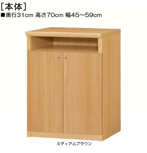 下部扉 窓下収納 高さ70cm幅45〜59cm奥行31cm厚棚板(棚板厚み2.5cm) 下扉高さ52.5cm 漫画ラック デスク周り
