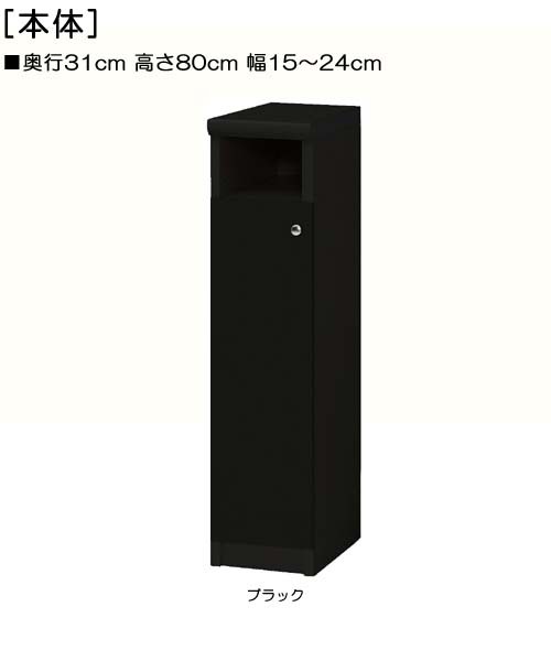 下部扉 リビング隙間収納 高さ80cm幅15〜24cm奥行31cm厚棚板(棚板厚み2.5cm) 下扉高さ62.6cm A4ファイル本棚 納戸