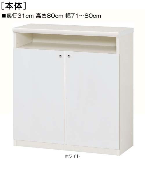 下部扉 窓下収納 高さ80cm幅71〜80cm奥行31cm厚棚板(棚板厚み2.5cm) 下扉高さ62.6cm CDディスプレイ ベッドルーム