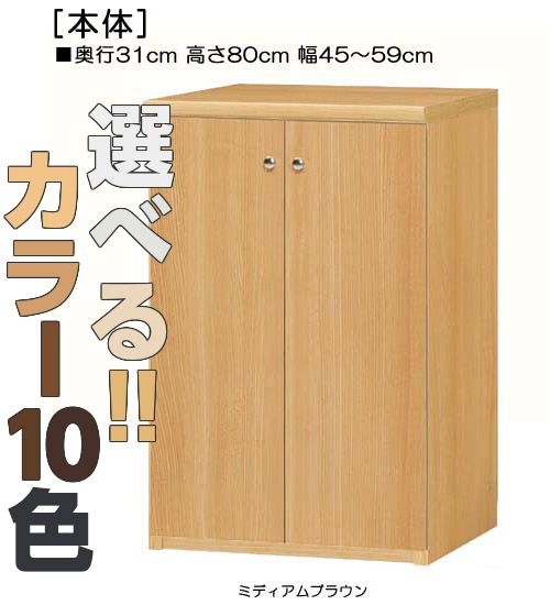 全面扉窓下収納 高さ80cm幅45〜59cm奥行31cm厚棚板(棚板厚み2.5cm) 両開き