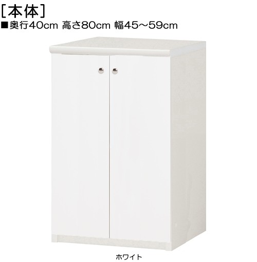 全面扉扉付き頑丈リビングボード 高さ80cm幅45〜59cm奥行40cm厚棚板(棚板厚み2.5cm) 両開き