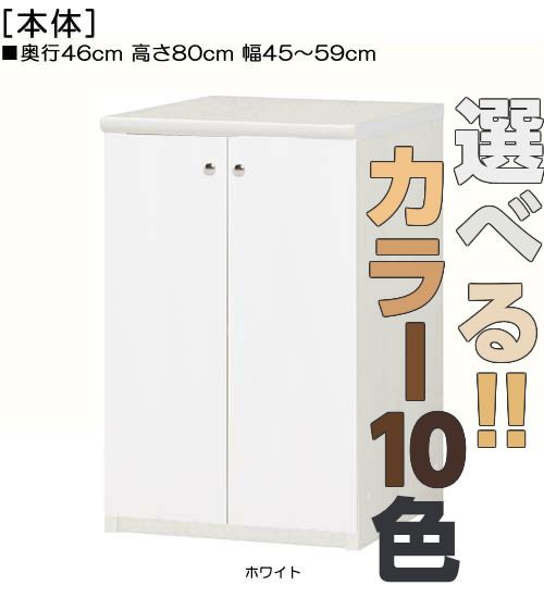全面扉リビング収納 高さ80cm幅45〜59cm奥行46cm厚棚板(棚板厚み2.5cm) 両開き