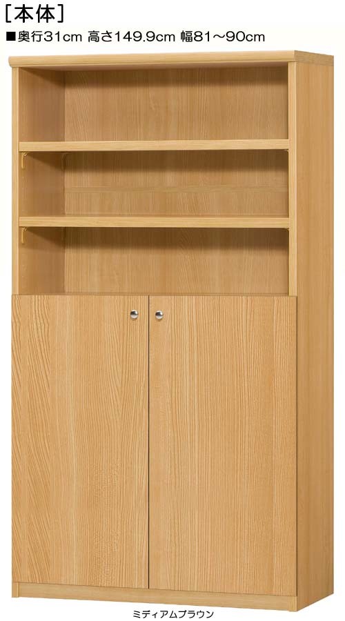 下部扉 壁面本棚 高さ149.9cm幅81〜90cm奥行31cm厚棚板(棚板厚み2.5cm) 下扉高さ80.8cm 食器家具 図書コーナー