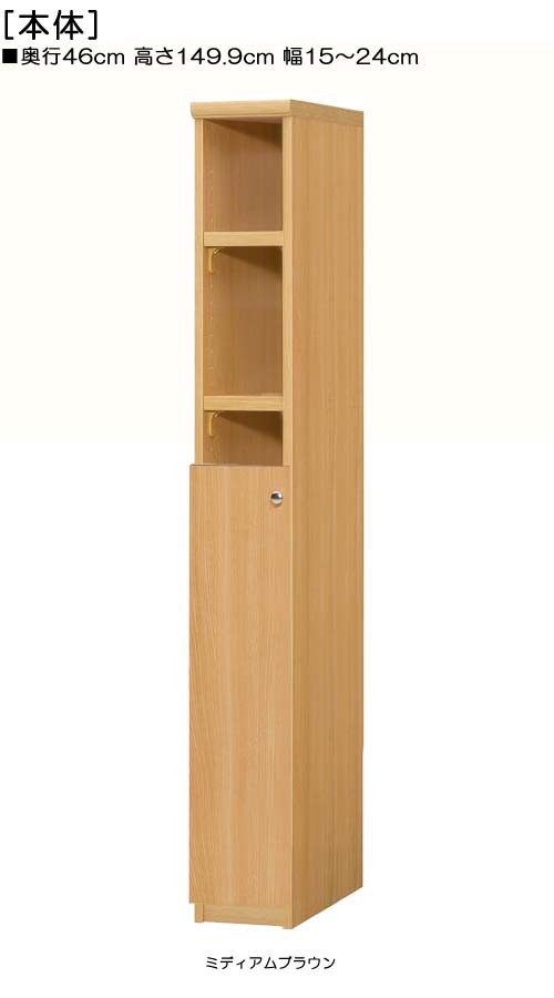 下部扉 隙間収納 高さ149.9cm幅15〜24cm奥行46cm厚棚板(棚板厚み2.5cm) 下扉高さ80.8cm シリーズ本ラック 玄関