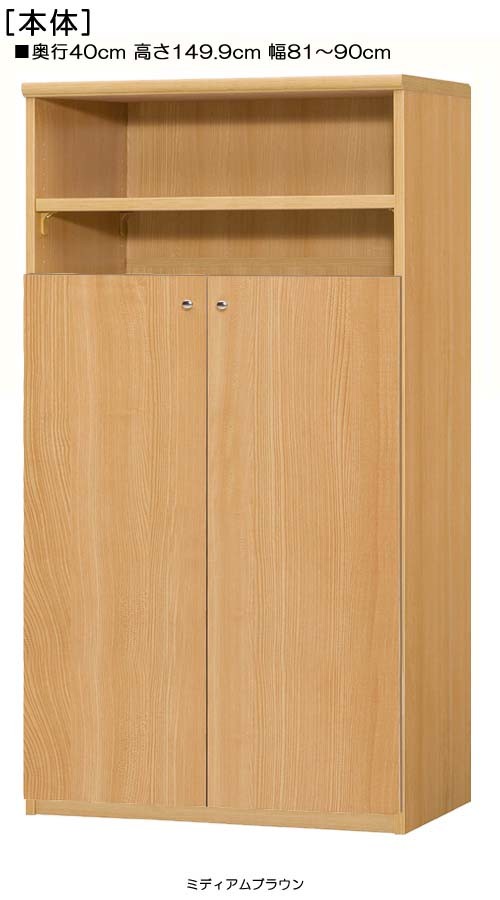 下部扉 A4ファイル書庫 高さ149.9cm幅81〜90cm奥行40cm厚棚板(棚板厚み2.5cm) 下扉高さ109.5cm 新聞ボード オフィス