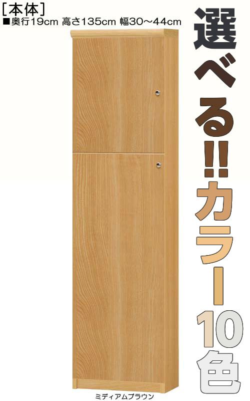 全面扉オーダー書棚 高さ135cm幅30〜44cm奥行19cm厚棚板(棚板厚み2.5cm) 上下共片開き(左開き/右開き)