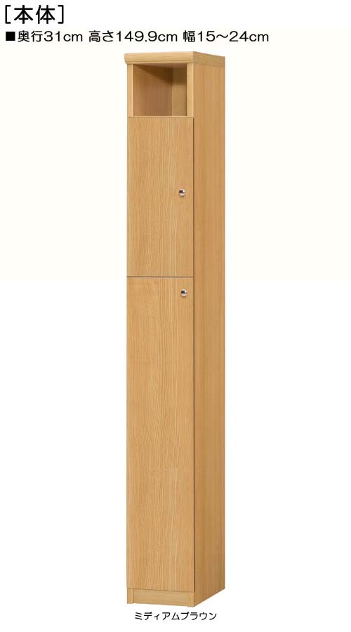 下部扉 リビング隙間収納 高さ149.9cm幅15〜24cm奥行31cm厚棚板(棚板厚み2.5cm) 下扉高さ127.3cm カップ家具 サニタリ