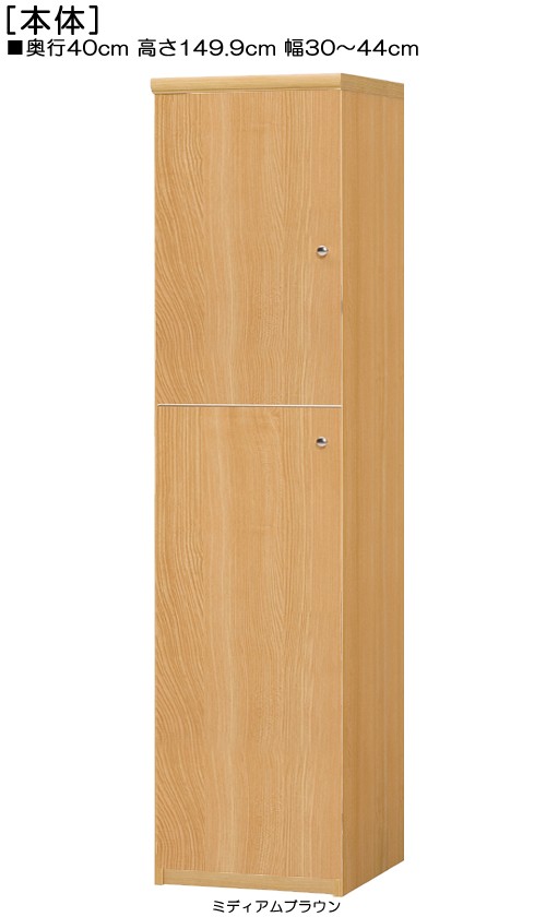全面扉扉付き木製玄関収納 高さ149.9cm幅30〜44cm奥行40cm厚棚板(棚板厚み2.5cm) 上下共片開き(左開き/右開き)