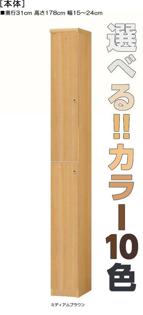 全面扉リビング隙間収納 高さ178cm幅15〜24cm奥行31cm厚棚板(棚板厚み2.5cm) 上下共片開き(左開き/右開き)