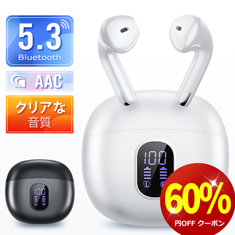 ワイヤレスイヤホン bluetooth 5.3 軽量 イヤホン iphone IPX7防水 25時間連続 HiFi高音質 ゲームモード 自動ペアリング 新生活 応援