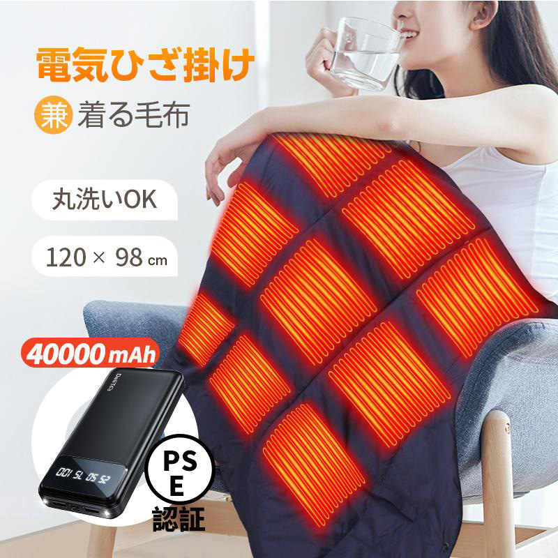「特典 40000mAhバッテリ」電気毛布 電気ブランケット ヒーターブランクケット 3段温度調節 日本製繊維綿 ひざ掛け毛布 新生活 応援