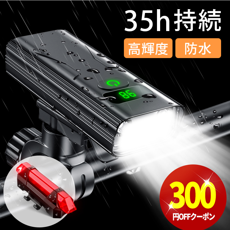 「クーポンで2,280円」自転車 ライト 後付け 300m照射&35時間持続 LED 充電式 usb 自転車ライト IPX6 防水 高輝度 5段階調節 5600mAh 軽量 防災グッズ