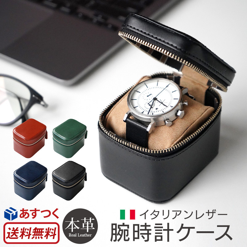 ■パッと目を惹くイタリアンレザーを使用した腕時計ケースです。大切な時計の保管や持ち運びに最適なアイテムです。