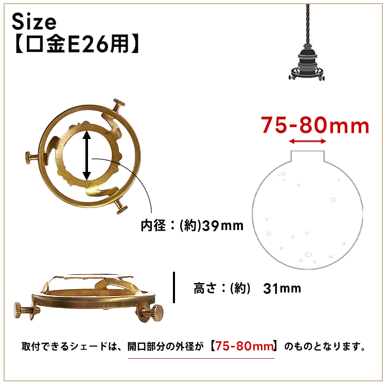 取付可能なシェード :開口部分の外径が75〜80mmのシェード