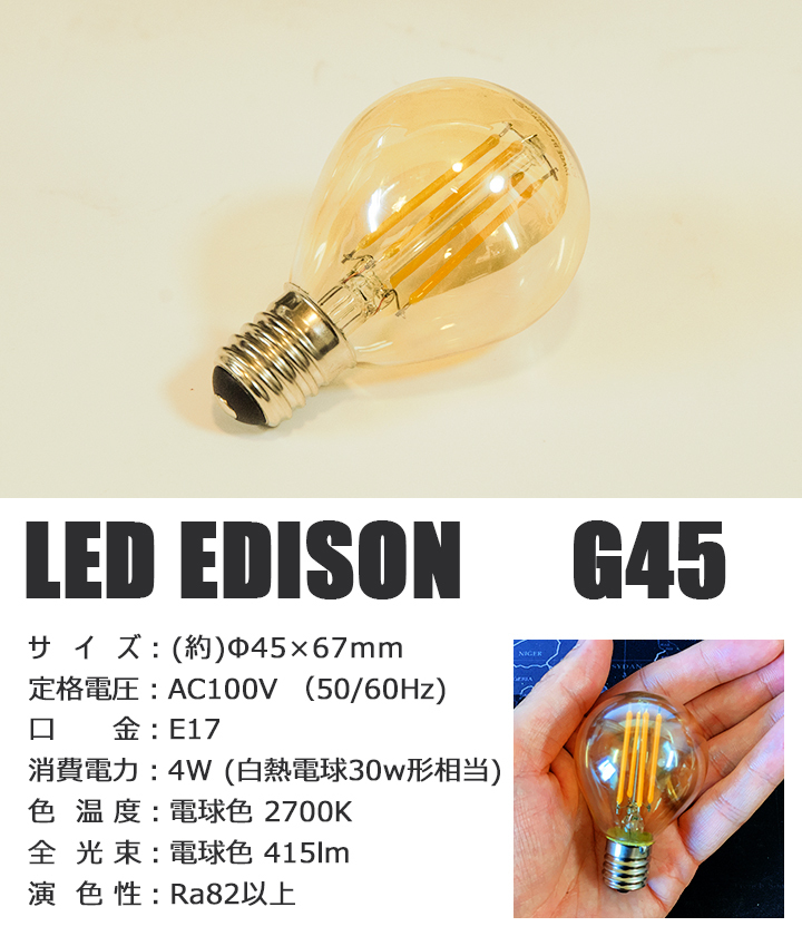 LEDフィラメント電球 E17 30w形 415lm 電球色2700K エジソン電球 エジソンランプ ミニ丸型 ミニボール電球形 照明 G45