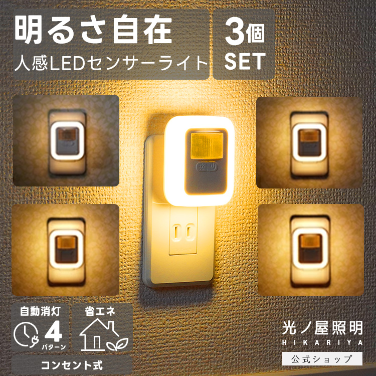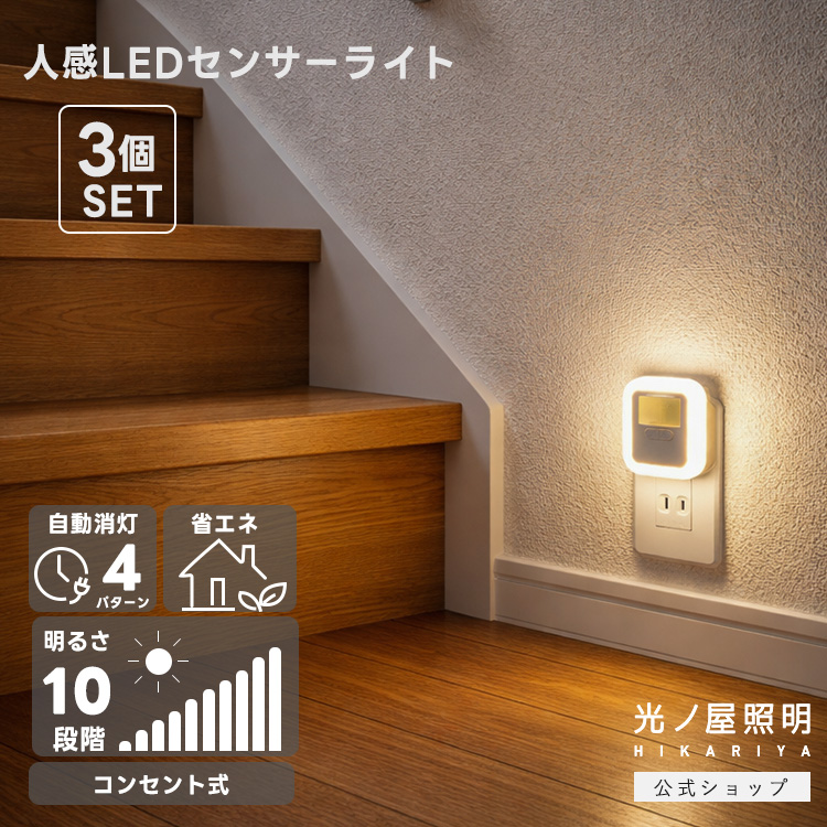 3個セット 送料無料 センサーライト コンセント式 人感センサーライト フットライト 足元灯 簡単操作 自動点灯 自動消灯 屋内 玄関 廊下 階段 爆買