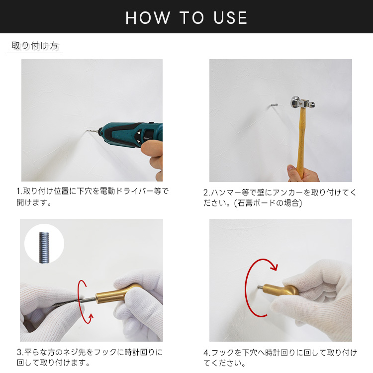 ※コンクリート等に取り付ける場合は、それぞれの面にあったアンカー等を別途ご用意してください。