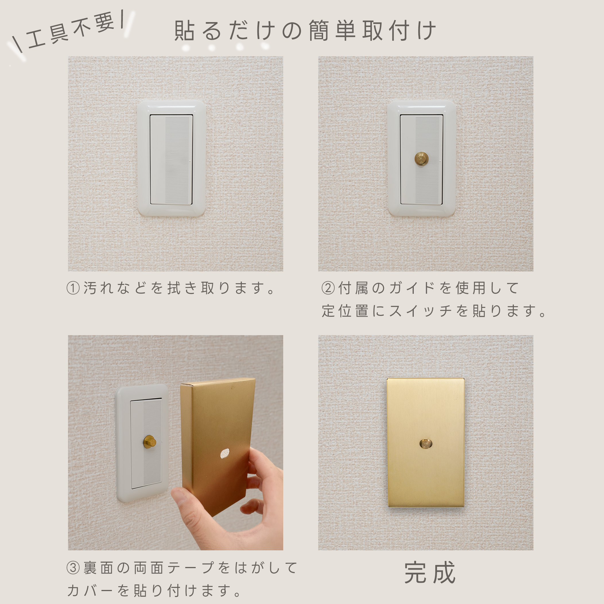 ※今後取り外し予定がある場合は、マスキングテープをご用意いただき下地に貼ってから取り付けるのがおすすめです。
