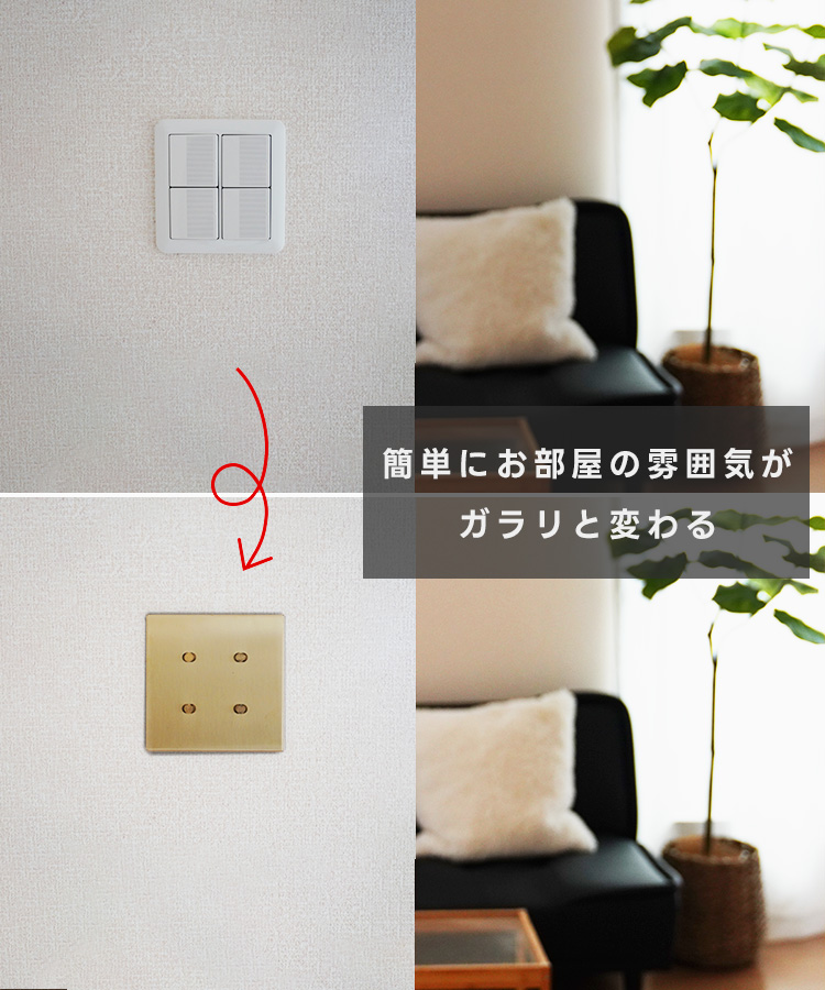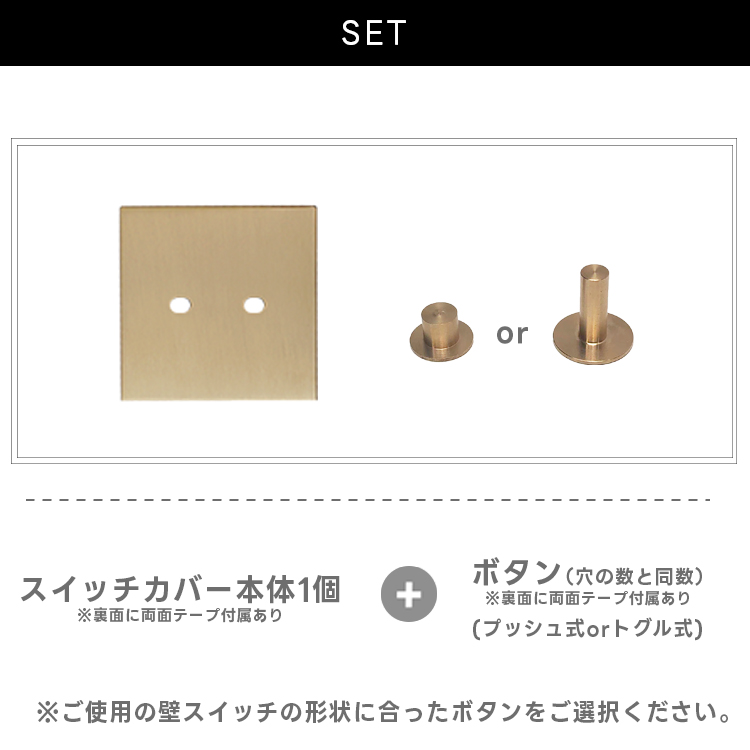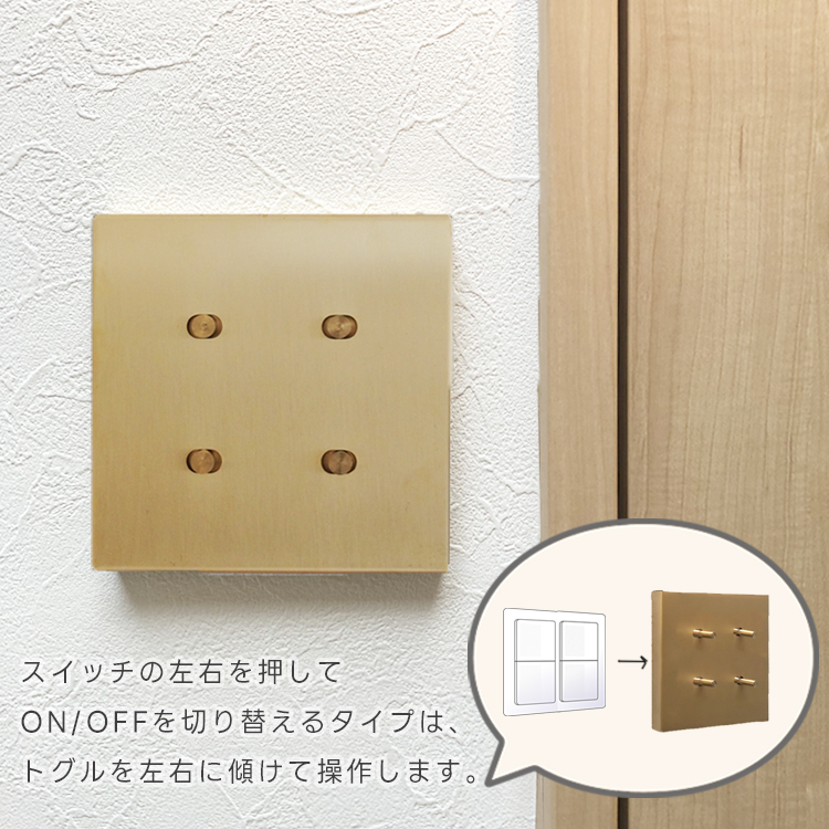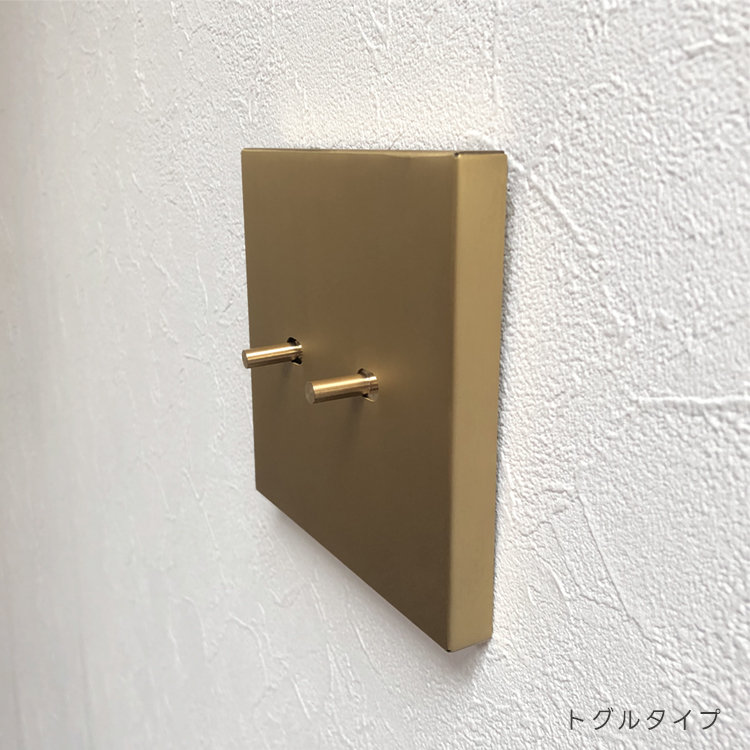 スイッチカバー かぶせるだけ 真鍮 2口 工事不要 ネジ不要 スイッチプレート 後付け 簡単 プッシュ型 トグル型 穴あけ不要