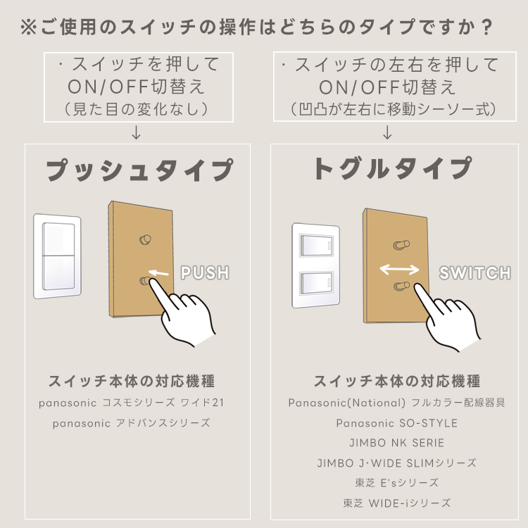 ご使用のスイッチに合わせてボタンをお選びください。(※別のタイプをお選びの場合操作できませんのでご注意ください。)
