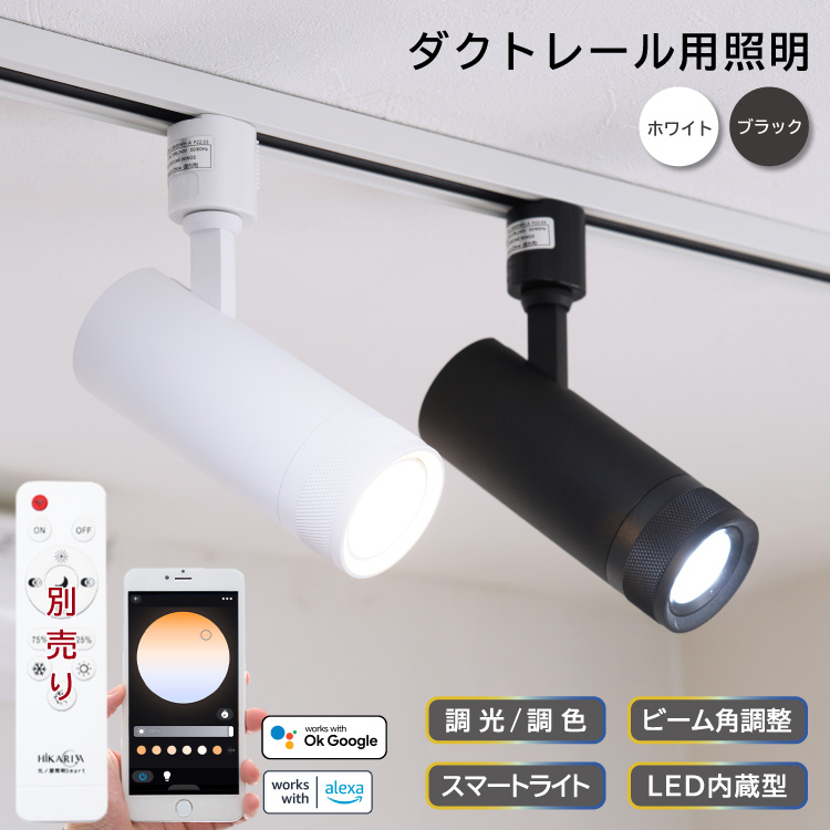 調光調色 LED一体型 スポットライト 1灯 ビーム角度15°60° ダクトレール用 ライティングレール用 スマホ操作 音声操作 スマートスピーカー対応