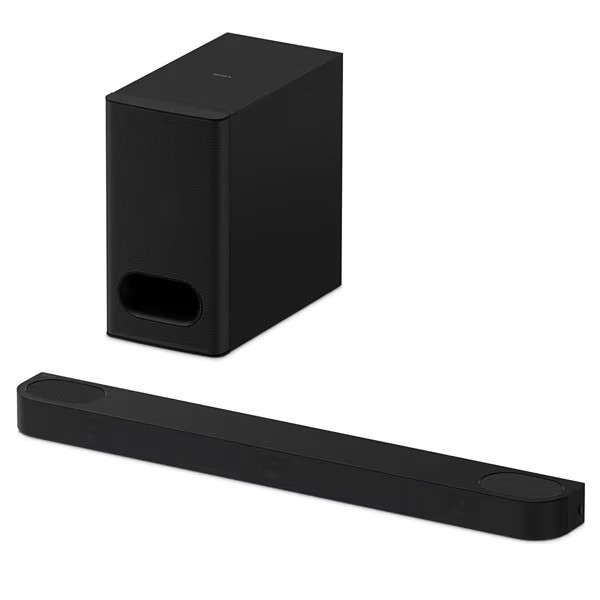 上向きのイネーブルドスピーカーを搭載した3.0.2ch仕様のサウンドバーと、付属のワイヤレスサブウーハーで3.1.2chをカバーする2ユニットサウンドバー
