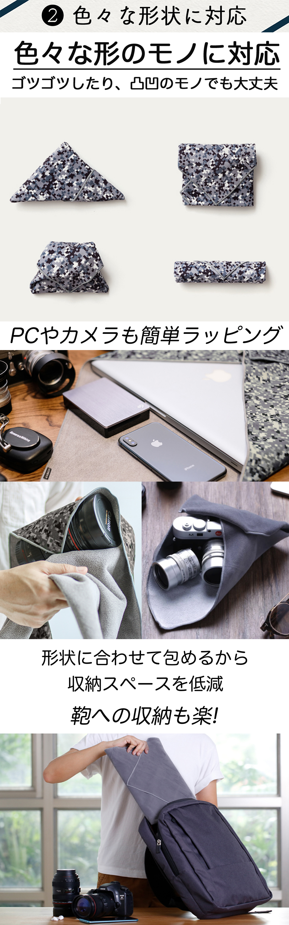 重ねるとくっつく不思議な保護クロス Stick It Wrapper【L サイズ (470 x 470)】 カメラケース カメラバッグ カメララップ カメラ/レンズ 保護