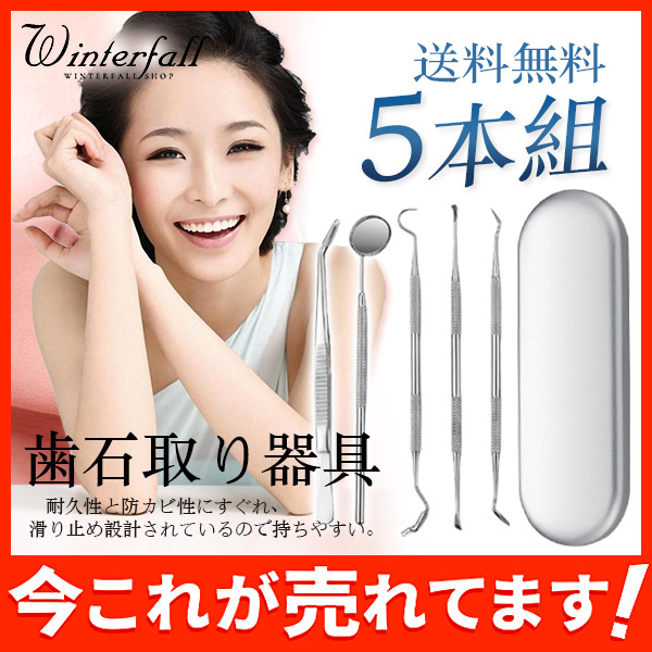 高級ステンレス製歯用ツール、初心者向けセット。自宅で本格汚れ除去、充実の5点セット。
