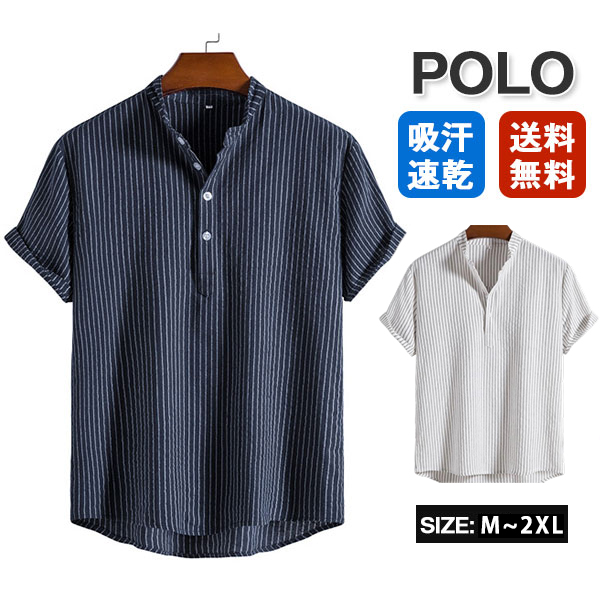 ポロシャツ メンズ 半袖 スポーツ ストライプ 立ち襟 麻 無地 ゴルフシャツ シンプル アメカジ 綿 夏 カジュアル ゆったり 爆買 【期間限定&2点10%OFF】