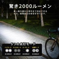 自転車ライト 2000ルーメン ベル付き 高輝度 小型 ソーラー充電 LED USB充電 IPX7防水 電池残量表示 防眩 明るい 4つのモード 爆買