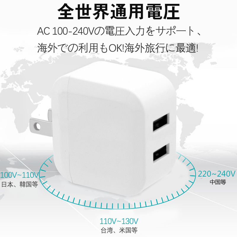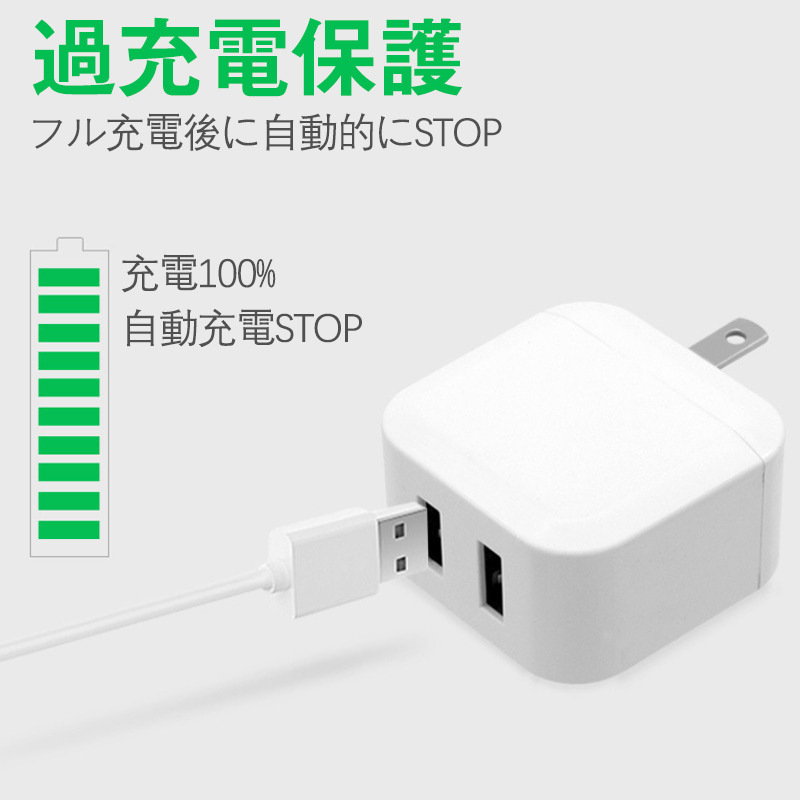 ACアダプター スマホ充電器 iPhone USB 急速充電器 2.4A 充電器 2ポート スマホ USB充電器 チャージャー コンセント 高速 急速