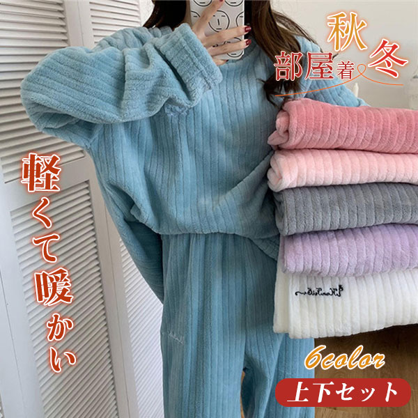 パジャマ レディース 上下セット 2点セット ルームウエア 女性用 暖かい 保温 秋冬 部屋着 寝巻き 楽チン 厚手 ストライプ柄 柔らかい 快適 爆買