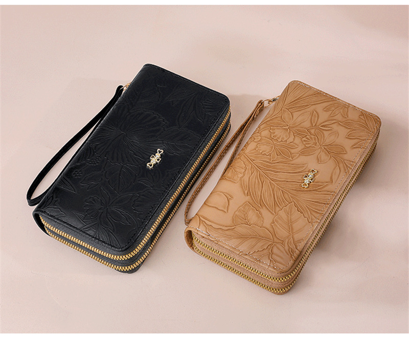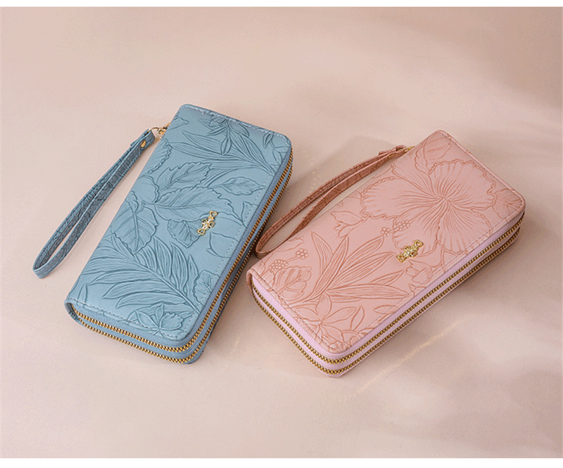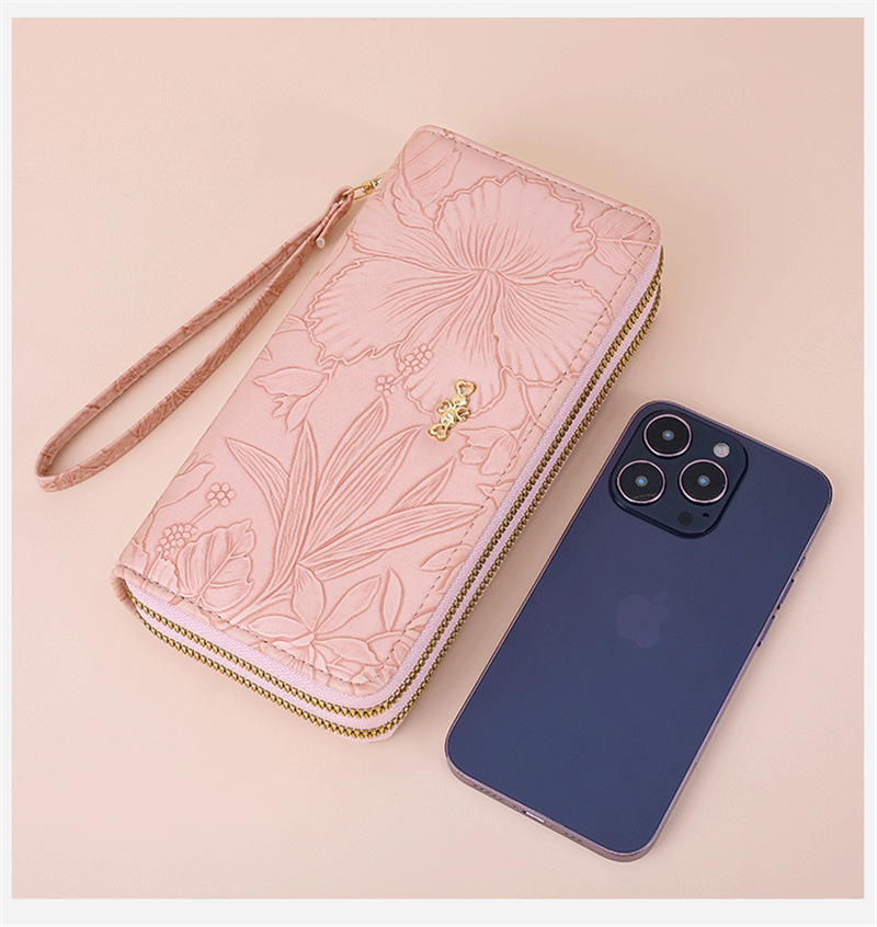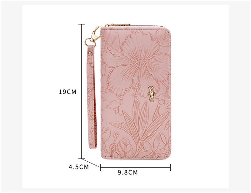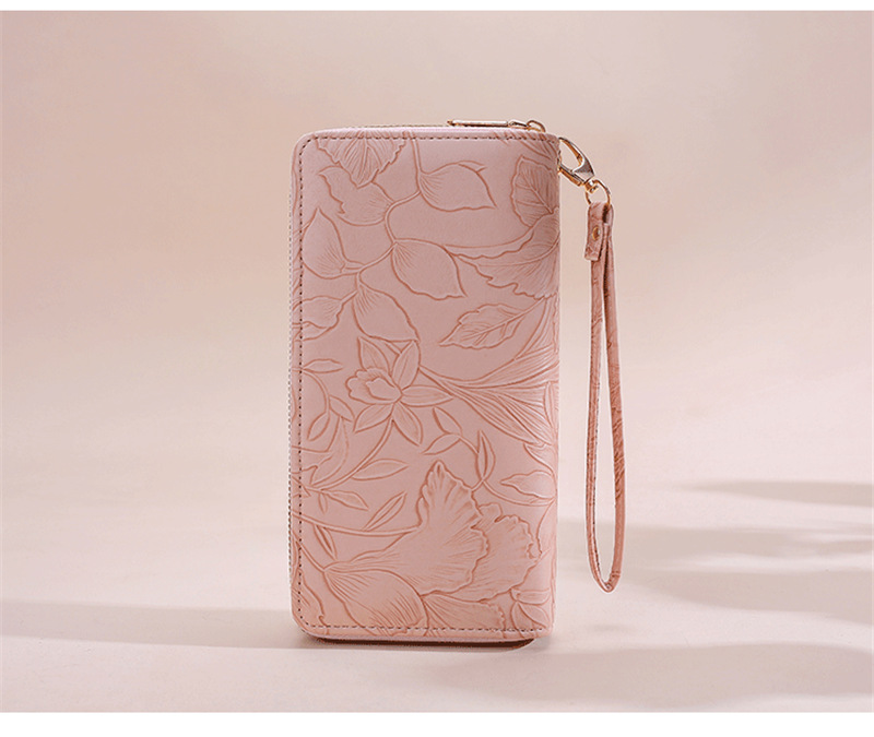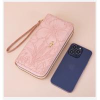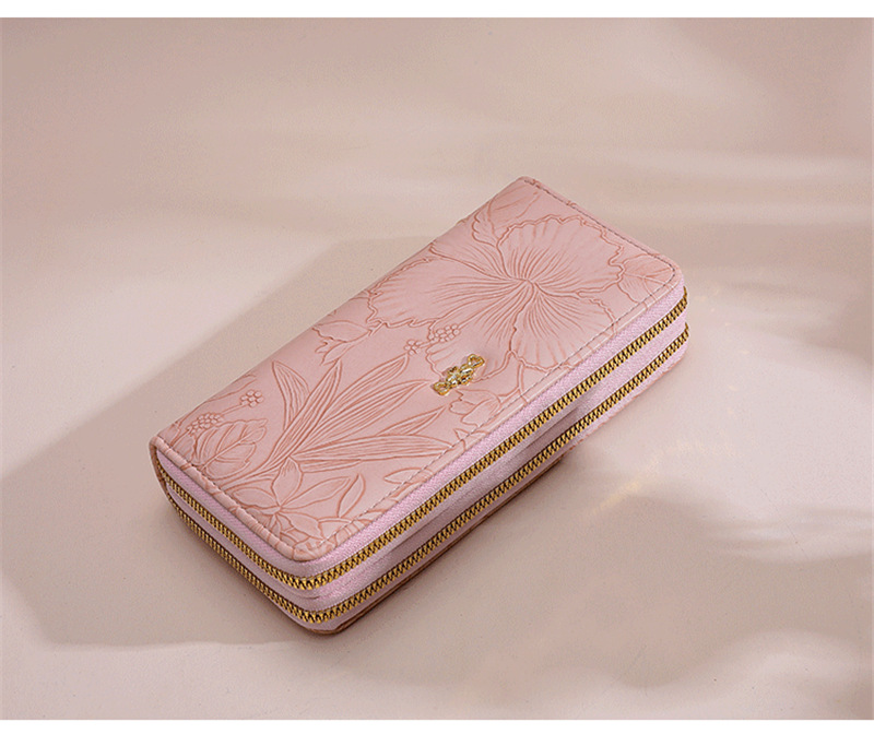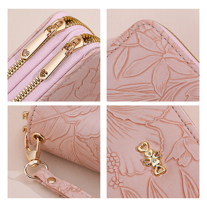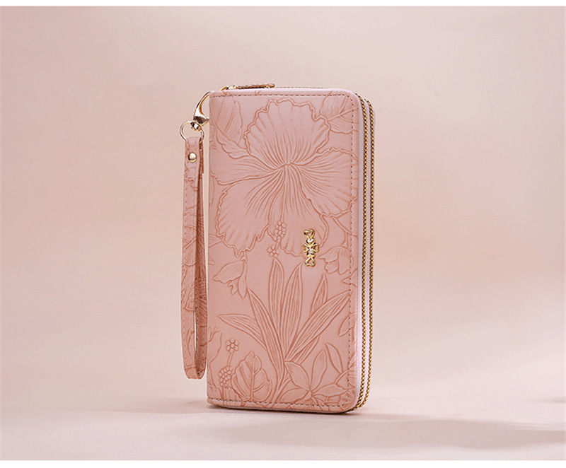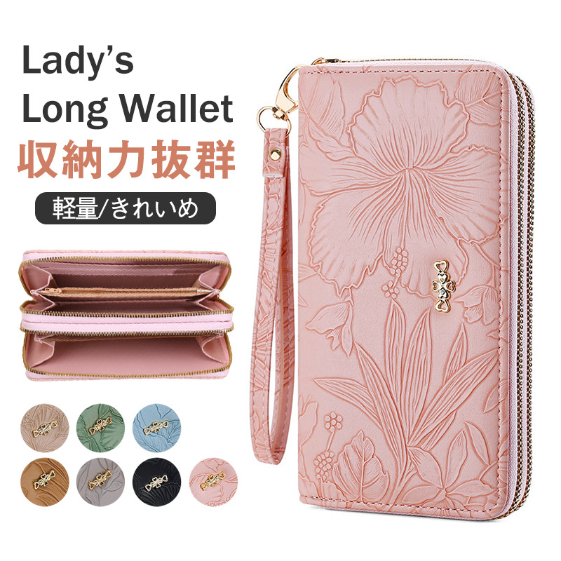 長財布 レディース 財布 花柄 合皮 小銭入れ 柔らかい カード入れ 高級感 ロングウォレット ダブルファスナー 多機能 大容量 ストラップ きれいめ