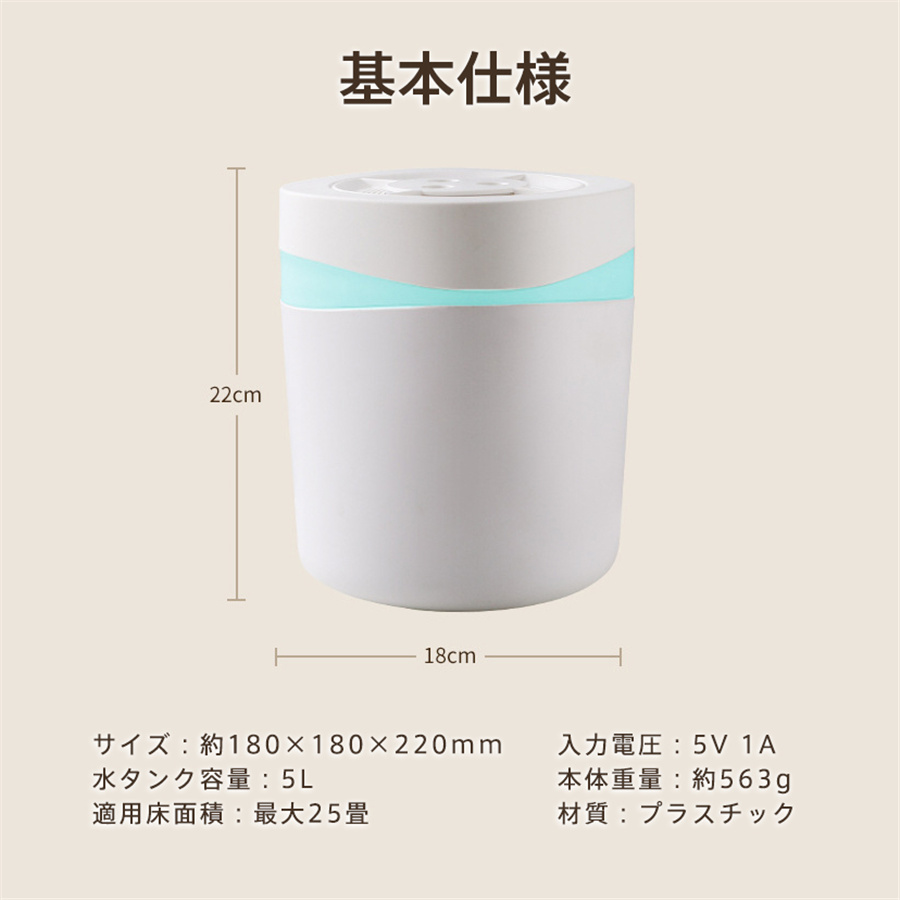 加湿器 超音波式 大容量 5L 卓上 加湿機 上部給水 USB給電 3段階調節 空焚き防止 省エネ ムードランプ 3つ噴出口 お手入れ簡単 ミスト 爆買