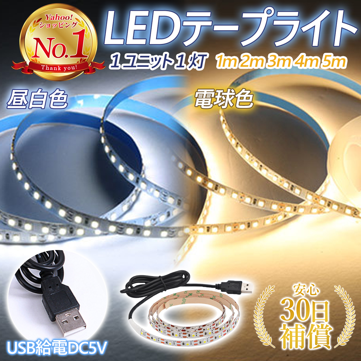 LED テープ ライト USB led照明器具 5m 4m 3m 2m 1m テープライト LEDテープ間接照明 廊下 玄関 車 電球色 昼光色 間接照明 おしゃれ リビング