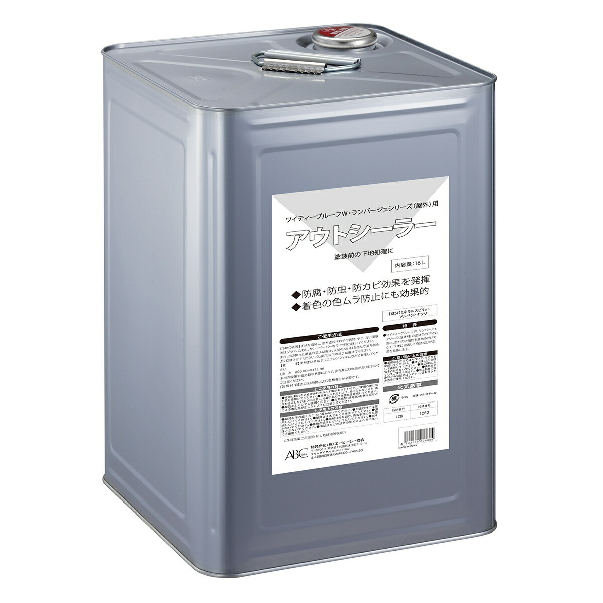 シーラー 塗料 アウトシーラー 16L ABC商会 ペンキ 防腐剤 木材 下地 下塗り 防虫 防カビ 屋外用 ランバージュ ワイティープルーフW 下地処理剤