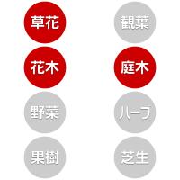 ばら、きく、さくら、つつじ類 、つばき類、くちなし 、まさき、さんごじゅ、はなみずき、クロトン