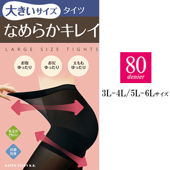 なめらかキレイ 大きいサイズ タイツ 女性用 おなかゆったり お尻ゆったり 太ももゆったり レディース 女性用 黒 80デニール 3L 4L 5L 6L 大きなサイズ