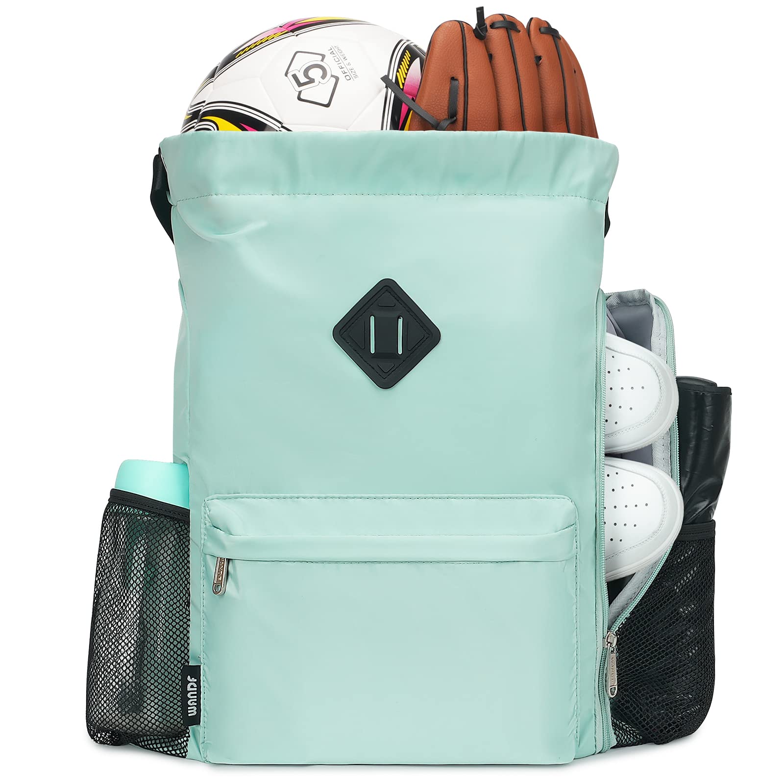 商品名:[WANDF] ナップサック シューズ収納ポケット付き ジムサック 防水 軽量 水泳 部活 運動 旅行(ミントグリーン)