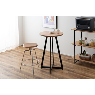 AZUMAYA(東谷) ハイテーブル 木目調×アイアン ナチュラル アジャスター付き お手入れ簡単 カウンターテーブル カフェテーブル|PT-342NA (4985155249732)