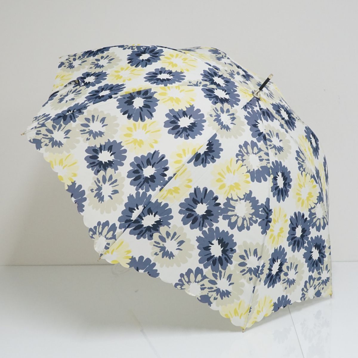 【1000円】 w.p.c ワールドパーティー 傘 USED美品 ネイビー×イエロー フラワー スカラップフリル 北欧 58cm T BT7786