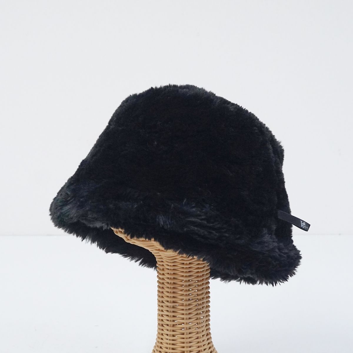 VARZAR ファーロングラベルソリッドドロップバケットハット USED美品 帽子 ブラック バザール フリーサイズ シンプル 韓国 X5892