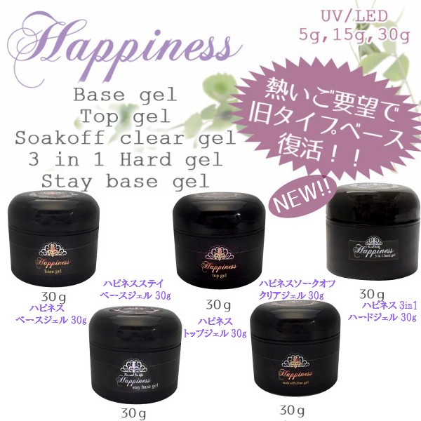 商品名 ハピネス ベース、トップ、ソークオフクリア、3in1ハードジェル、ステイベースジェル